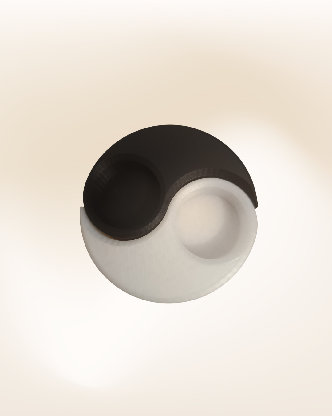 Ce support à chauffe-plat inspiré du symbole Yin & Yang incarne l’équilibre entre lumière et ombre, douceur et contraste.